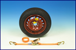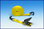 Completo ancoraggio confezionato con tenditore a cricchetto 35 mm. 3.000 Kg. Nastro di PE larg. mm. 35 c.r. 3.600 Kg., ganci triangolo alle estremità lunghezza standard mt. 0,50 + 5,50 mt. |